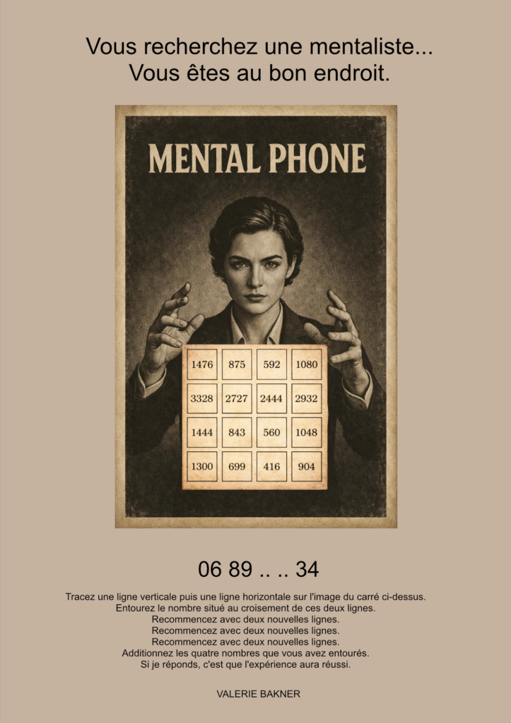 Valérie Bakner vous propose un spectacle de mentalisme et de magie.